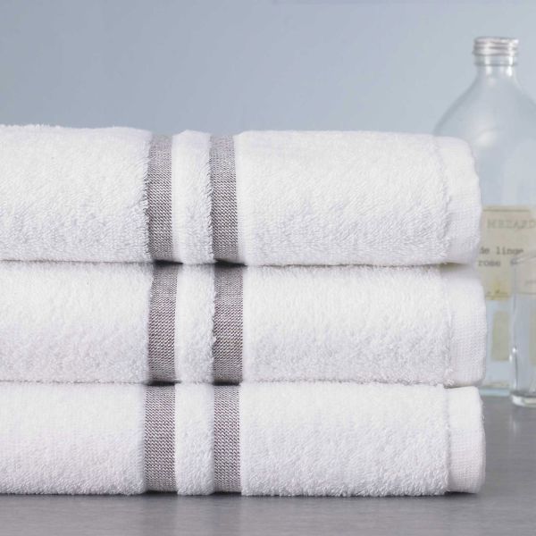 أضف إحساسًا بالصفاء إلى حمامك أو المنتجع الصحي الخاص بك مع مناشف الحمام براون لاند ذات الطراز الكلاسيكي. مناشف حمام الفندق البيضاء الفاخرة هذه مصنوعة من القطن الممشط بنسبة 100%، 450 جرامًا للمتر المربع وتحتوي على شريط رأس بني لافت للنظر لتحديد الحجم والرقي. تعتبر هذه المناشف السميكة والغنية والمتينة مثالية للاستخدام في حمامات السباحة والساونا.